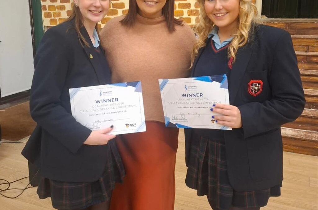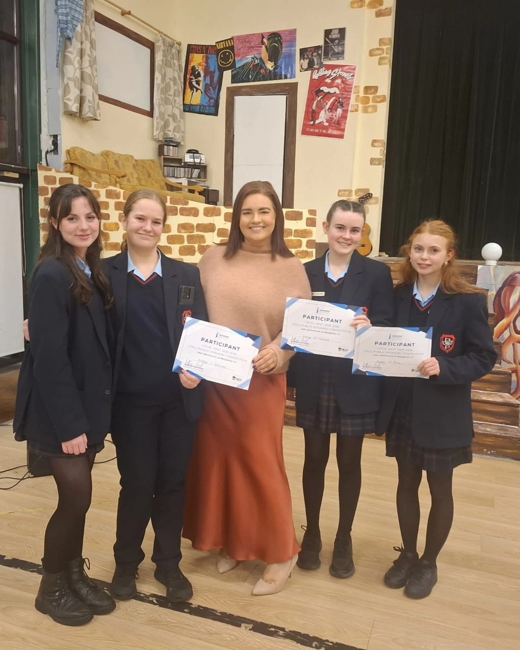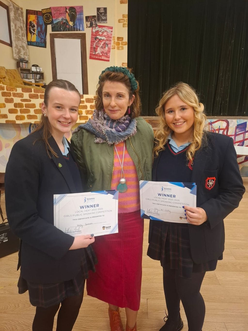 This evening, we hosted the local heats of Soroptomist Ireland Girls’ Public Speaking competition. Each of the 6 students spoke so well, and the team came away with a win. Ella McCarthy and Milly Seaman are through to the Munster Final in February.