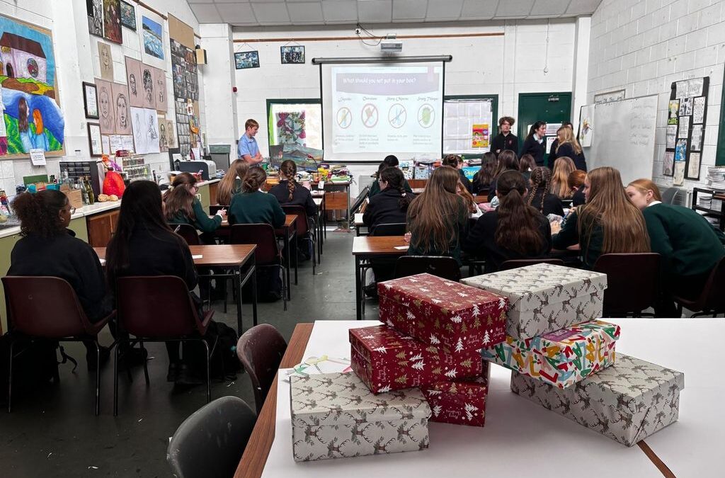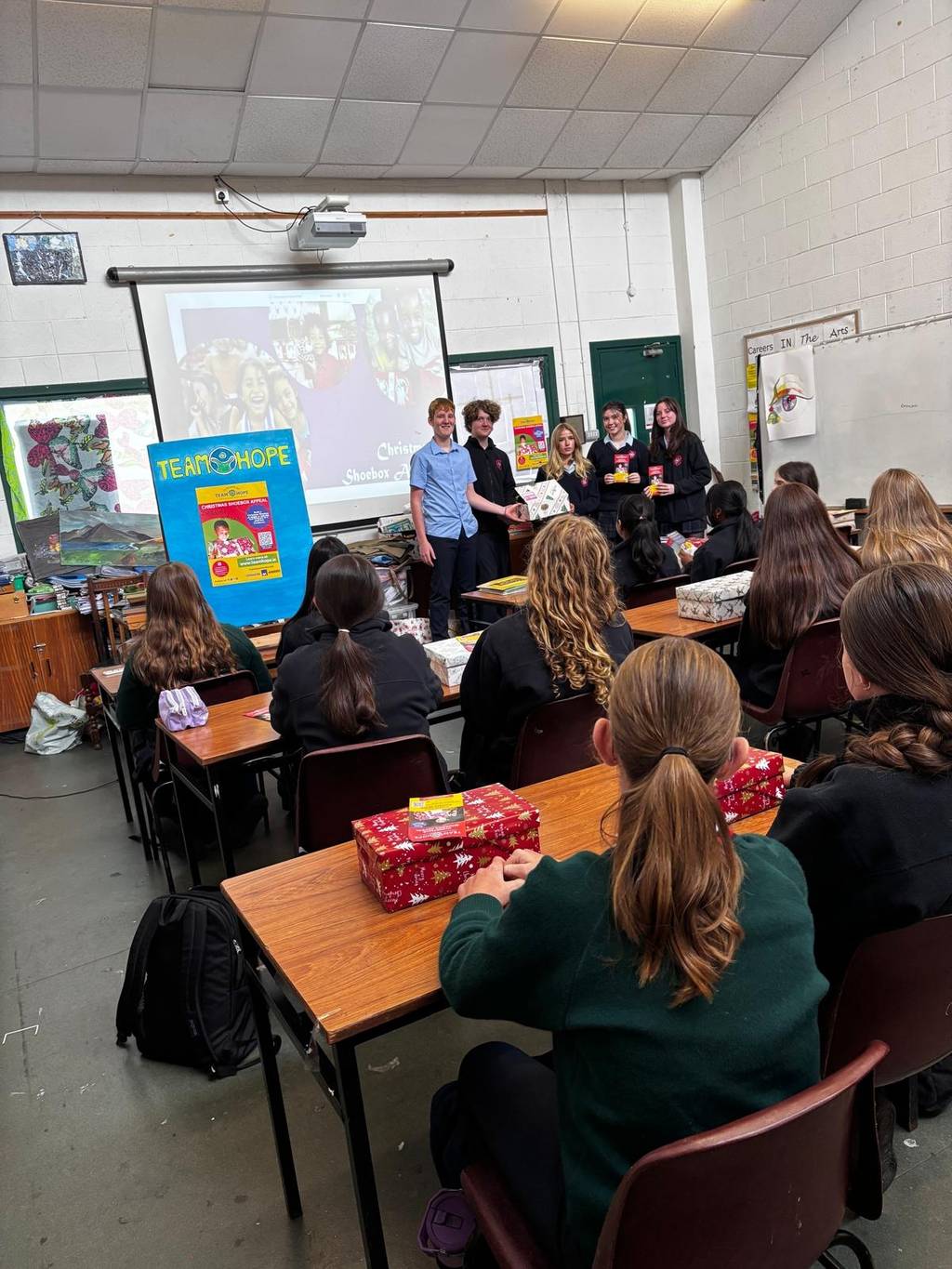 Our TY students are busy wrapping boxes and promoting the Team Hope campaign to Religion classes in our school. Filling a shoe box is a tradition that has been in our school for many years to encourage students to reach out to others less fortunate in the world. We would encourage all students to get involved and create a shoe box this year. For more information, contact TY students involved: Isla, Keelin, Cathal, Thomas, Isabelle or Ms Moynihan in the art room. The Team Hope website has more information . Please bring filled boxes to your religion class or the Library before 4th November. Every student who brings in a shoe box will be entered into a raffle for a Christmas hamper.