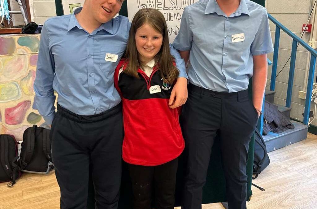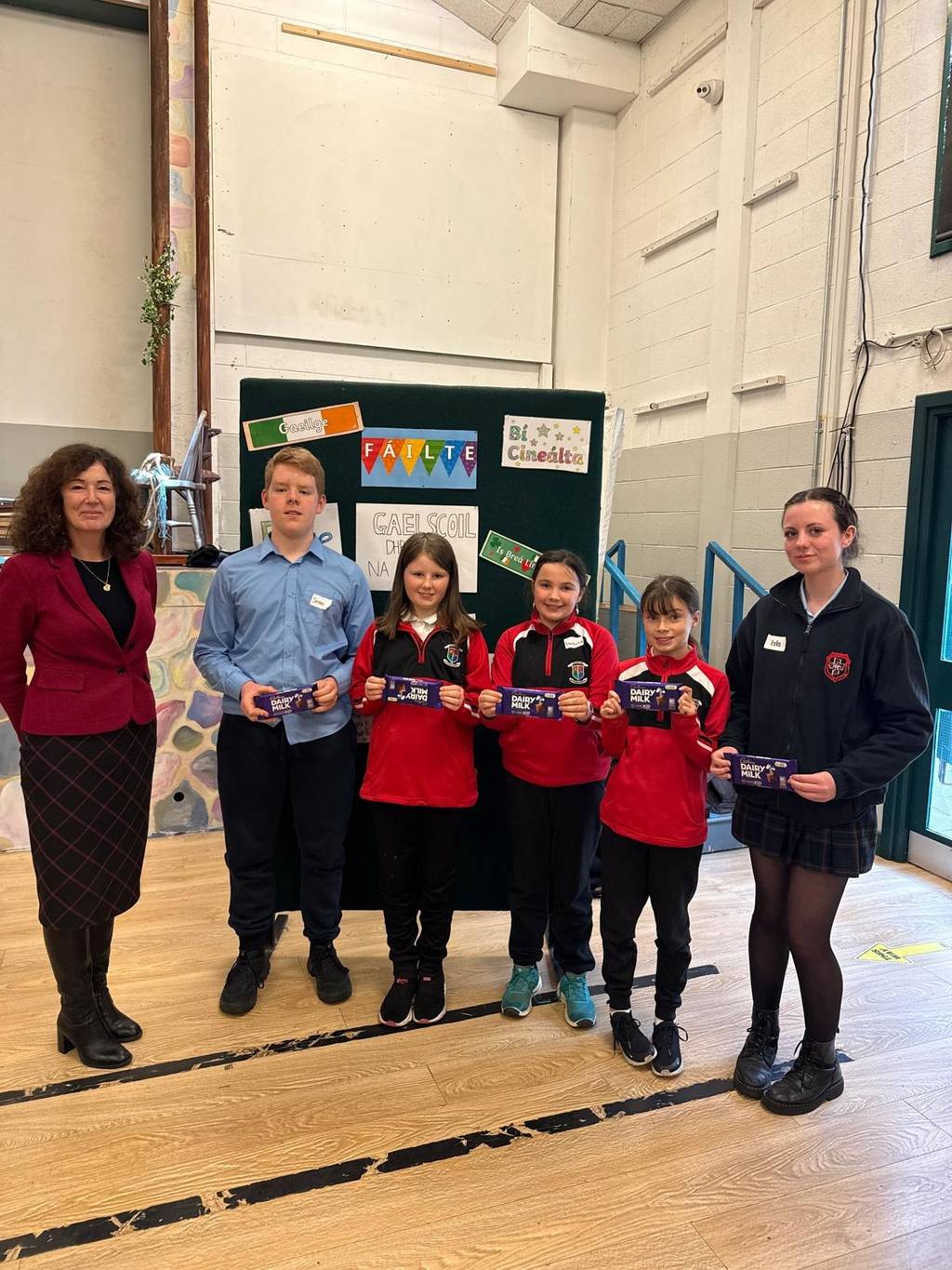 5th Class students from Gaelscoil Dhroichead na Banndan visited us today. They took part in an Irish quiz with Transition Year students. Everyone enjoyed themselves. Congratulations to the winners. #gaelbhratach